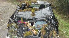 Несмотря на высокую скорость и столь сильный удар о массивный ствол дерева, крепкий кузов гоночного автомобиля спас водителя, который отделался лишь ушибами, от верной смерти.